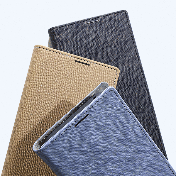 カードが入れられる大容量な収納ポケット。マグネット不使用でスマートな開閉、端末や磁気カードも安心。動画視聴などに便利なスタンド機能付き。ケースの蓋を閉じたまま通話が可能。