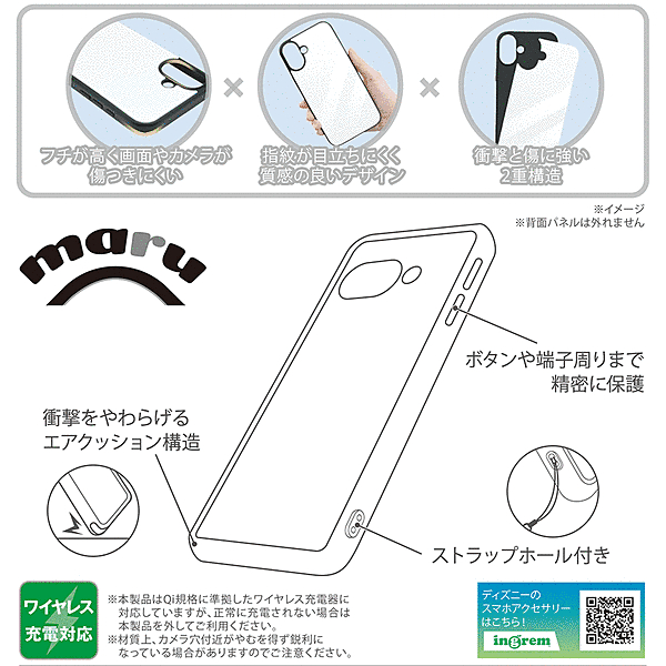 フチが高く画面やカメラが傷つきにくい。指紋が目立ちにくく質感の良いデザイン。衝撃と傷に強い2重構造。衝撃をやわらげるエアクッション構造。