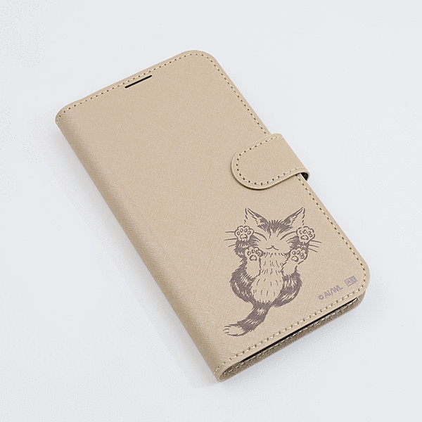 耐衝撃 手帳型レザーケース シンプルマグネット/ダヤン_にゃんキュー