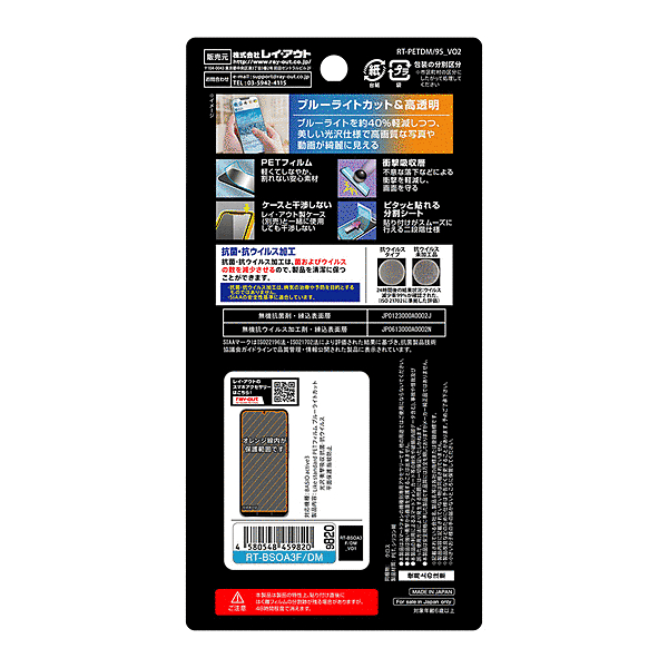 フィルム ブルーライトカット抗菌・抗ウイルス 指紋防止