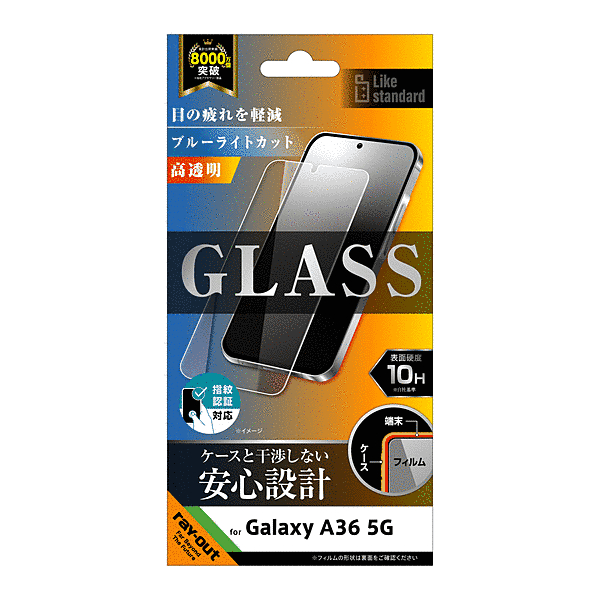 PETフィルムの約5倍の硬度で傷付きにくい。ブルーライトを約40%軽減、画面が綺麗に見える。防汚コーティングで指紋防止効果。レイ・アウト製ケース(別売)と一緒に使用しても干渉しない設計。
