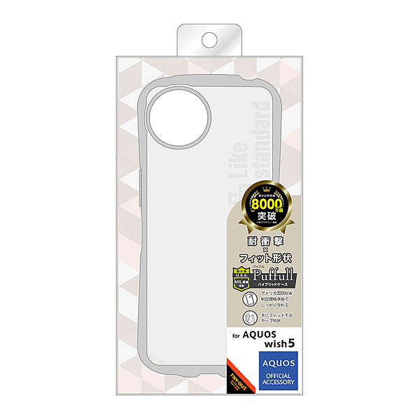 傷に強く黄ばみにくい。衝撃をやわらげる全周囲クッション構造。高い透明感、クリア長持ち。