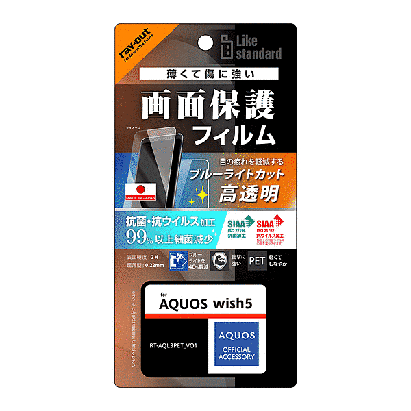 PETフィルム ブルーライト 光沢 抗菌 平面 防指紋