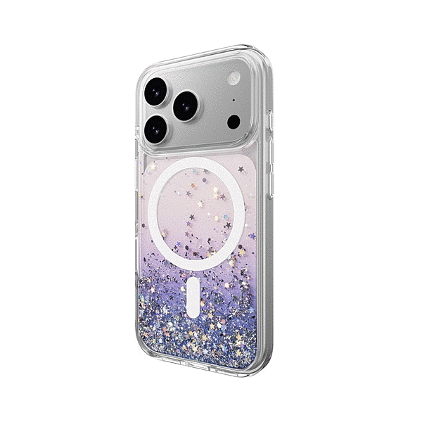 「キラキラがかわいい」立体的に散りばめられたキラキラグリッターは、角度や照明によって異なる色合いが楽しめます。「埋め込みタイプ」キラキラグリッターは埋め込みタイプなので、輝きが続き、剥がれ落ちる心配もありません。 ※グリッターが流れる液体タイプではありません。「色あせにくい」色あせにくい素材を使用しているので、長くお使いいただけます。「マグネット搭載」Apple純正MagSafe充電器や対応アクセサリが付けられ、規格に準じたワイヤレス充電が可能です。「MIL規格準拠」米国防総省制定の、MIL-STD-810規格準拠の試験をクリアした衝撃に強い設計です。