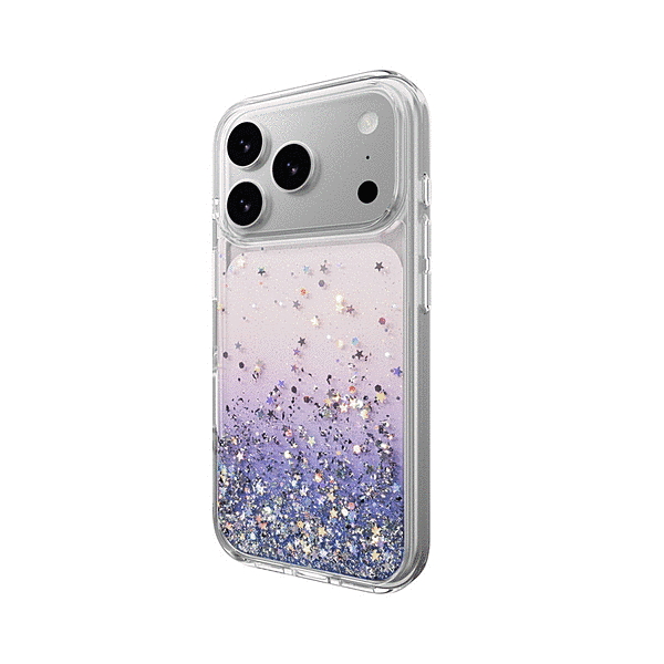 「キラキラがかわいい」立体的に散りばめられたキラキラグリッターは、角度や照明によって異なる色合いが楽しめます。「埋め込みタイプ」キラキラグリッターは埋め込みタイプなので、輝きが続き、剥がれ落ちる心配もありません。 ※グリッターが流れる液体タイプではありません。「色あせにくい」色あせにくい素材を使用しているので、長くお使いいただけます。「MIL規格準拠」米国防総省制定の、MIL-STD-810規格準拠の試験をクリアした衝撃に強い設計です。「画面・カメラ保護」液晶画面やカメラレンズが接地面に触れないよう、ケースやフレームを高めに設計しています。