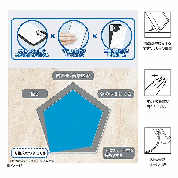 さらさらとしたマットな質感で、指紋が目立ちにくいハイブリッドケース。