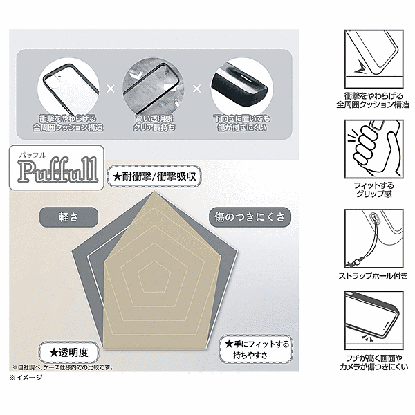 背面は傷に強いポリカーボネート、側面には厚みのあるTPU素材を使用し、安心感のある使い心地を実現しました。