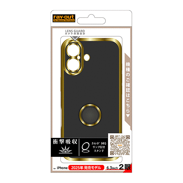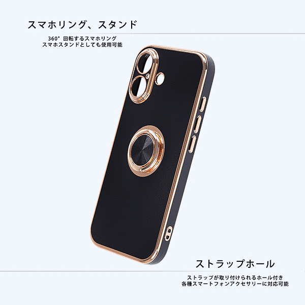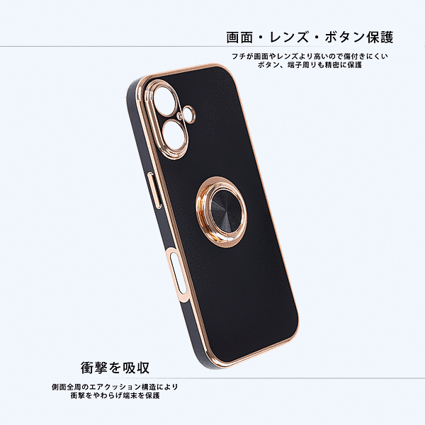 ソフトケース 精密設計 フレームメッキ リング付 ブラック ゴールド