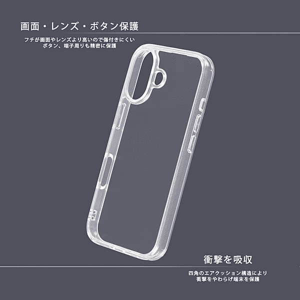側面には柔軟なTPU素材を使用し、衝撃をやわらげながら端末にフィット。