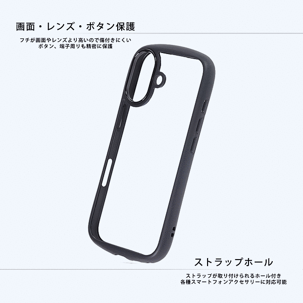 背面は傷に強いポリカーボネート、側面には厚みのあるTPU素材を使用し、安心感のある使い心地を実現しました。