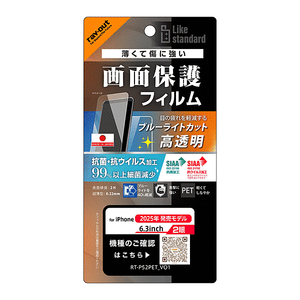 フィルム ブルーライト 高透明 耐衝撃 抗菌 抗ウィルス