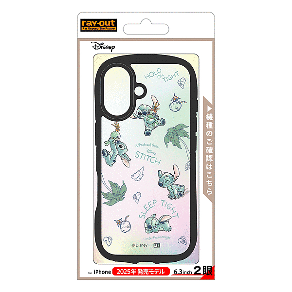 スティッチがのんびり南国で楽しんでいる様子を表現したデザインと、衝撃に強い安心感を兼ね備えたハイブリッドケース。