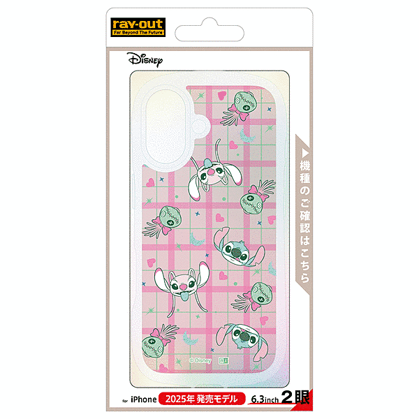 人気のスクランプとスティッチ、エンジェルのキュートな総柄。格子柄が半透明になった新しい質感のデザインと、衝撃に強い安心感を兼ね備えたハイブリッドケース。