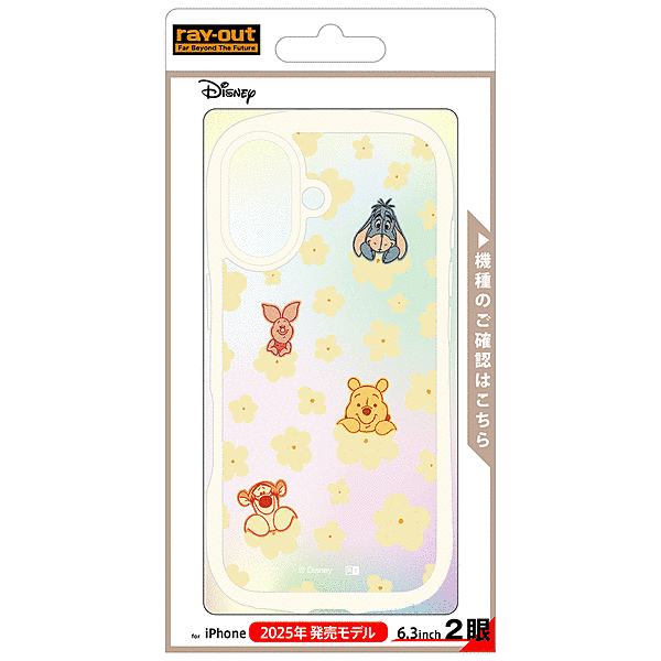 プーと仲間達が花に乗ってこちらを覗いているような可愛らしいデザインで、衝撃に強く、フィット感にも優れたハイブリッドケース。