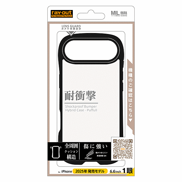 ハイブリッドタフケース パッフル レンズガード ブラック