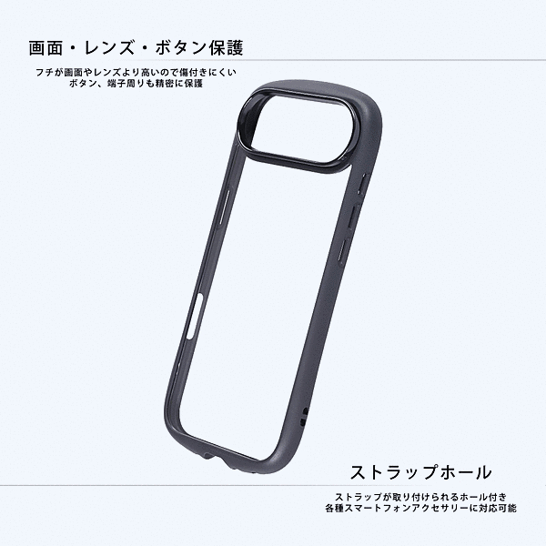 背面は傷に強いポリカーボネート、側面には厚みのあるTPU素材を使用し、安心感のある使い心地を実現しました。