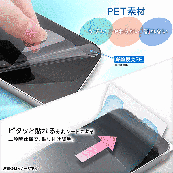 割れにくく、しなやかなPET素材を使用した反射防止フィルム。