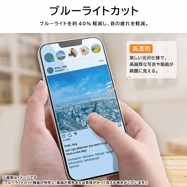 割れにくく、しなやかなPET素材を使用したブルーライトカット光沢フィルム。