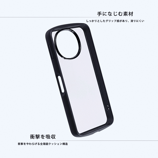 背面は傷に強いポリカーボネート、側面には厚みのあるTPU素材を使用し、安心感のある使い心地を実現しました。