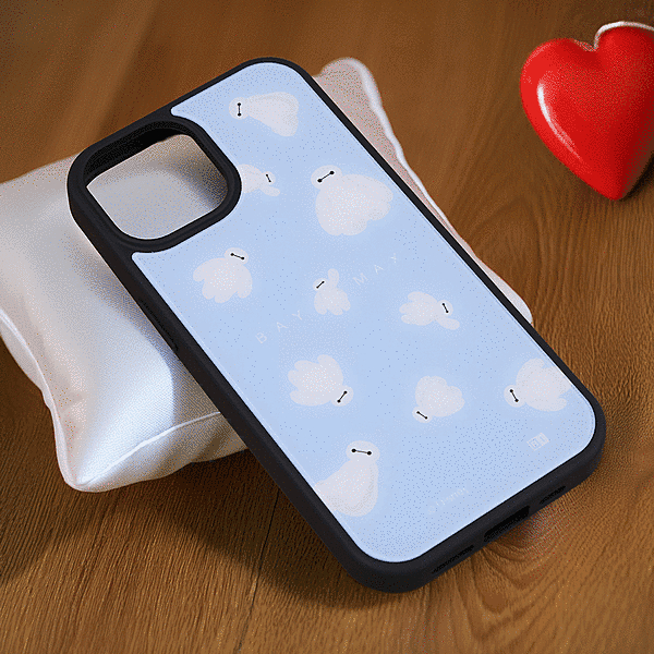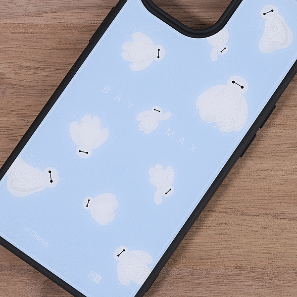 表面硬度2Hの背面に、かわいいベイマックスがふわふわ浮かんでいるようなデザインをあしらったハイブリッドケース。