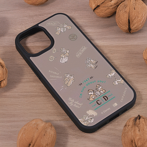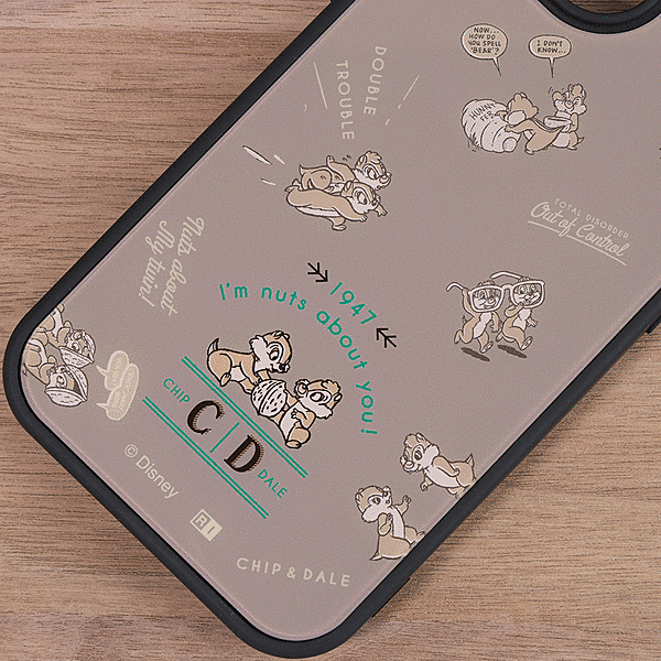表面硬度2Hの背面に、チップ&デールのユーモラスなデザインをあしらったハイブリッドケース。
