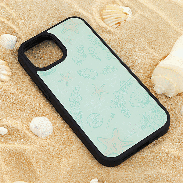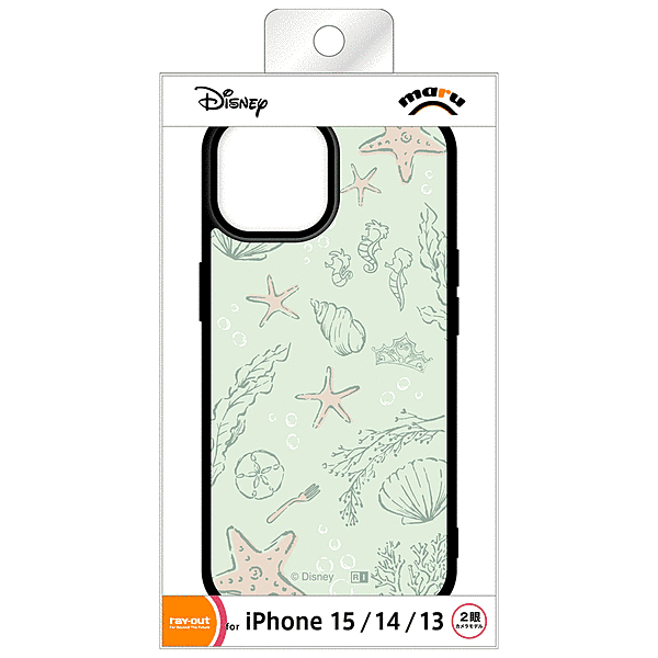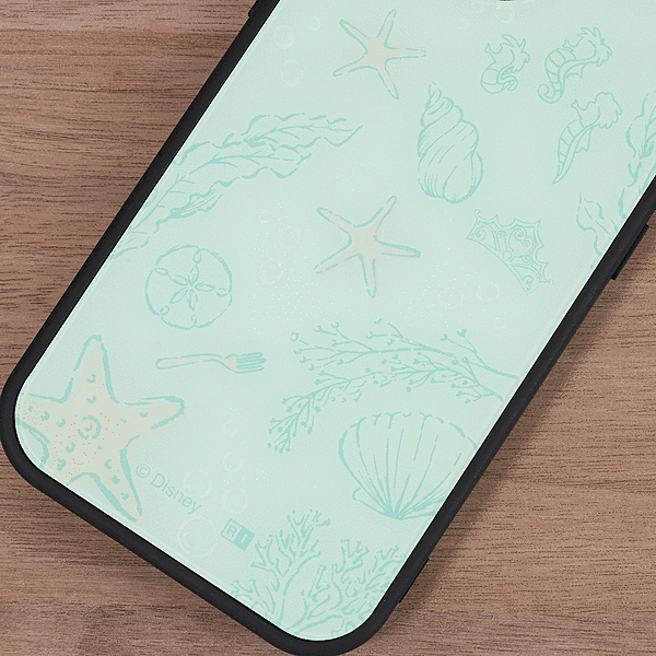 表面硬度2Hの背面に、アリエルの世界観でやわらかなタッチのアイコン風デザインをあしらったハイブリッドケース。
