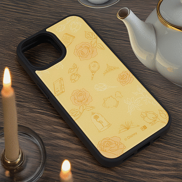 表面硬度2Hの背面に、ベルの世界観でやわらかなタッチのアイコン風デザインをあしらったハイブリッドケース。