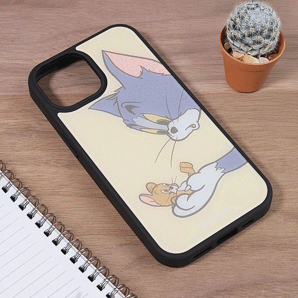 表面硬度2Hの背面に、トムとジェリーの表情が可愛いらしいデザインをあしらったハイブリッドケース。
