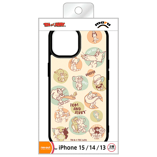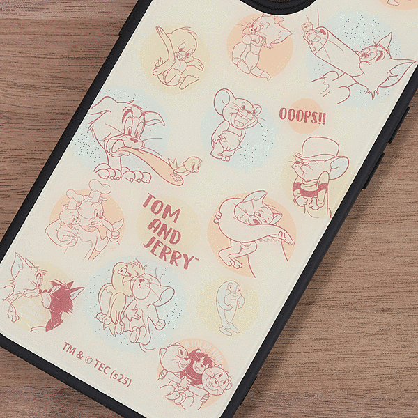 表面硬度2Hの背面に、トムとジェリーとフレンズたちが可愛いらしいデザインをあしらったハイブリッドケース。