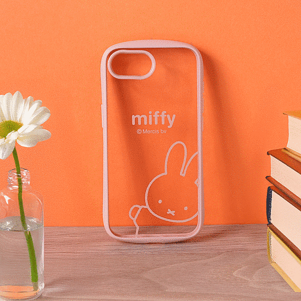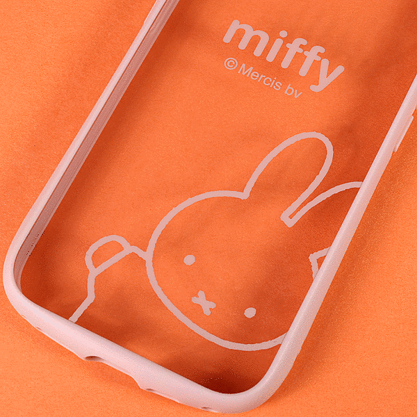 ミッフィーがひょっこり覗き込む姿が可愛いらしいデザインと、衝撃に強い安心感を兼ね備えたハイブリッドケース。
