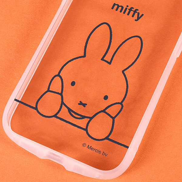 ほおづえをついている可愛いミッフィーが描かれたデザインと、衝撃に強い安心感を兼ね備えたハイブリッドケース。