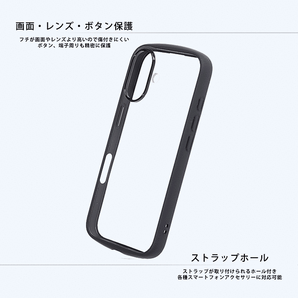 背面は傷に強いポリカーボネート、側面には厚みのあるTPU素材を使用し、安心感のある使い心地を実現しました。