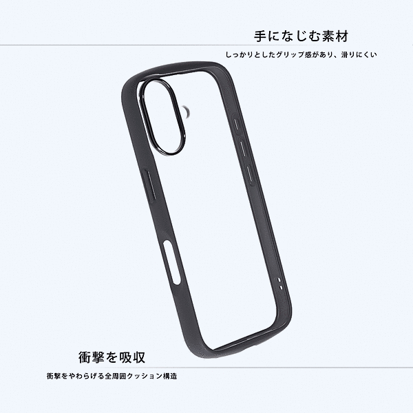 背面は傷に強いポリカーボネート、側面には厚みのあるTPU素材を使用し、安心感のある使い心地を実現しました。