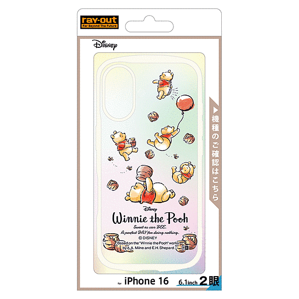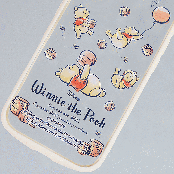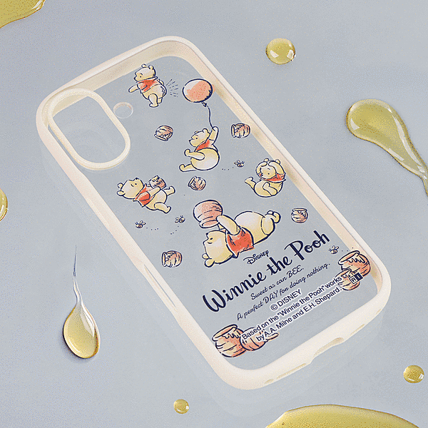 プーさんとはちみつの壺や風船などプーさんらしいアイテムを散りばめて心が和むようなデザインと、衝撃に強い安心感を兼ね備えたハイブリッドケース。