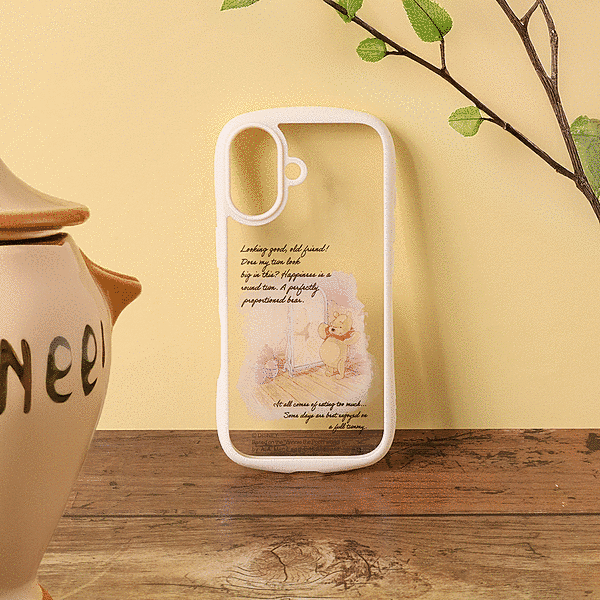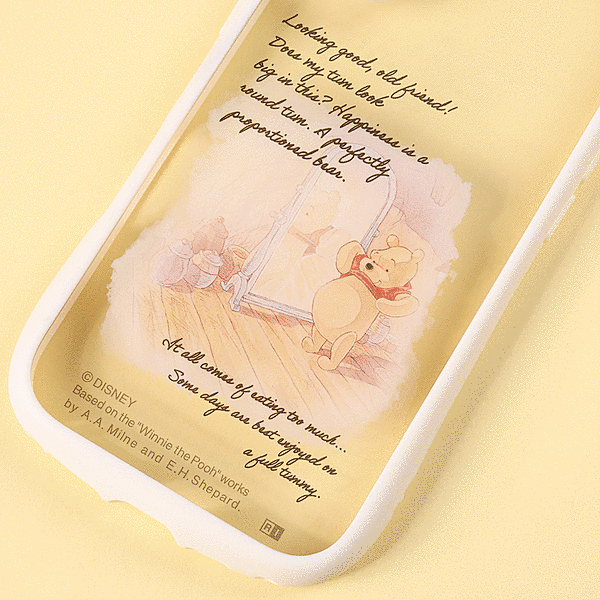 プーさんのまるいおなかがなんとも可愛いらしく心が和むようなデザインと、衝撃に強い安心感を兼ね備えたハイブリッドケース。