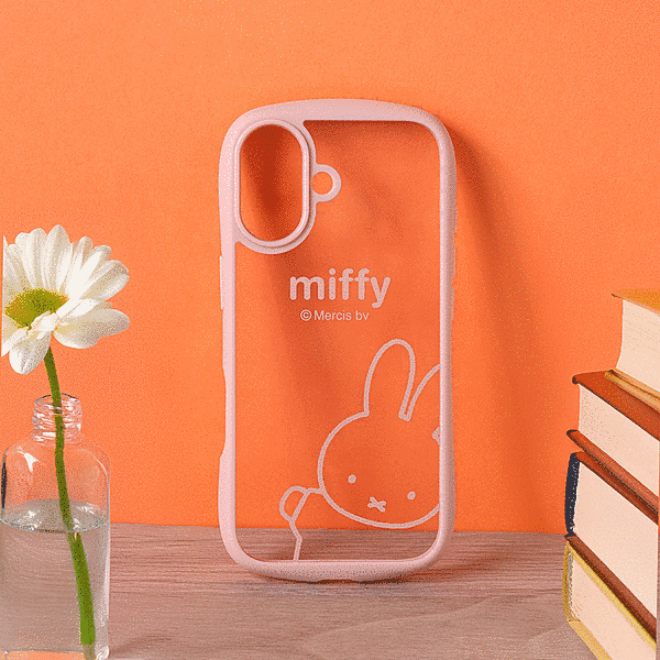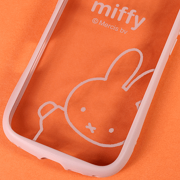 ミッフィーがひょっこり覗き込む姿が可愛いらしいデザインと、衝撃に強い安心感を兼ね備えたハイブリッドケース。