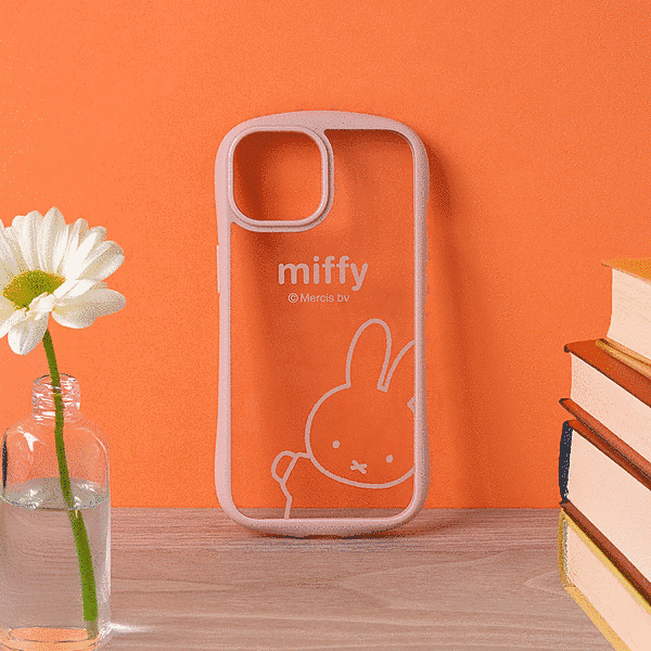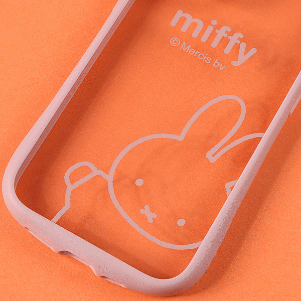 ミッフィーがひょっこり覗き込む姿が可愛いらしいデザインと、衝撃に強い安心感を兼ね備えたハイブリッドケース。
