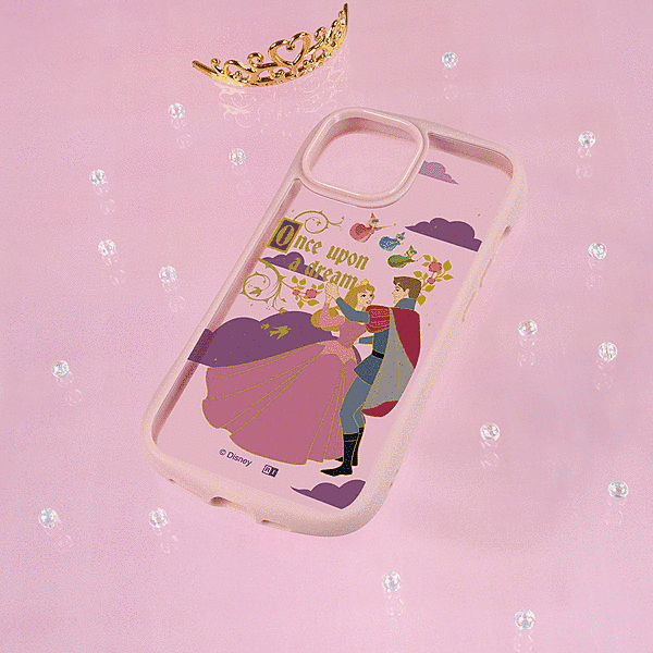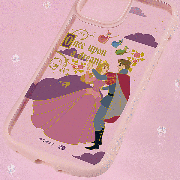 映画「眠れる森の美女」のオーロラ姫とフィリップ王子がダンスしているシーンのアートを使用したデザイン。
