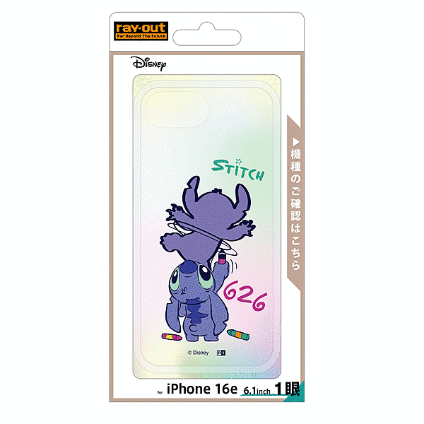 お絵描きが好きなスティッチが、自分自身を描いている、遊び心たっぷりのデザインが楽しめる透明感のあるハイブリッドケース。