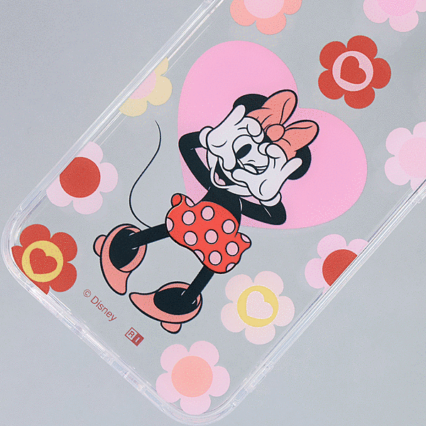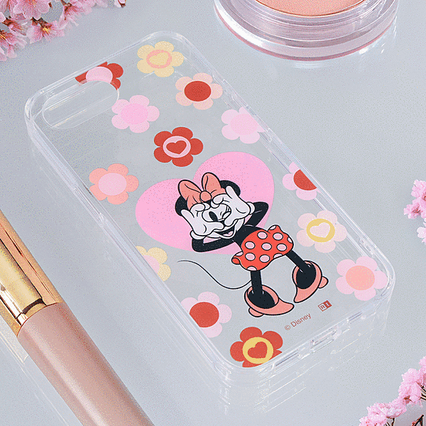 お花とミニーの可愛いデザインが楽しめる透明感のあるハイブリッドケース。