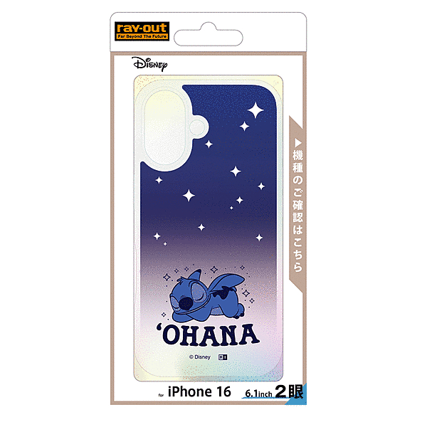 ビーチハウスの屋上にある展望台から見える星空のイメージと眠り姿のスティッチのデザインが楽しめる透明感のあるハイブリッドケース。