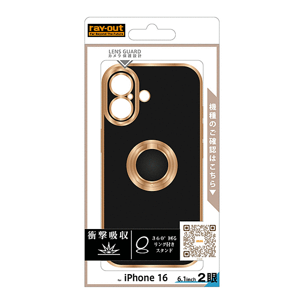 ソフトケース 精密設計 フレームメッキ リング付き/ブラック/ゴールド