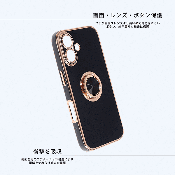 ソフトケース 精密設計 フレームメッキ リング付き/ホワイト/ゴールド