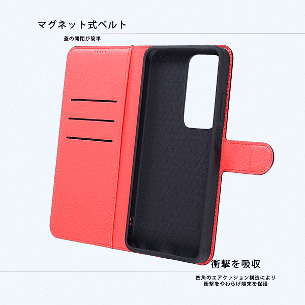 手帳型ケース シンプル マグネット/ブラック/レッド