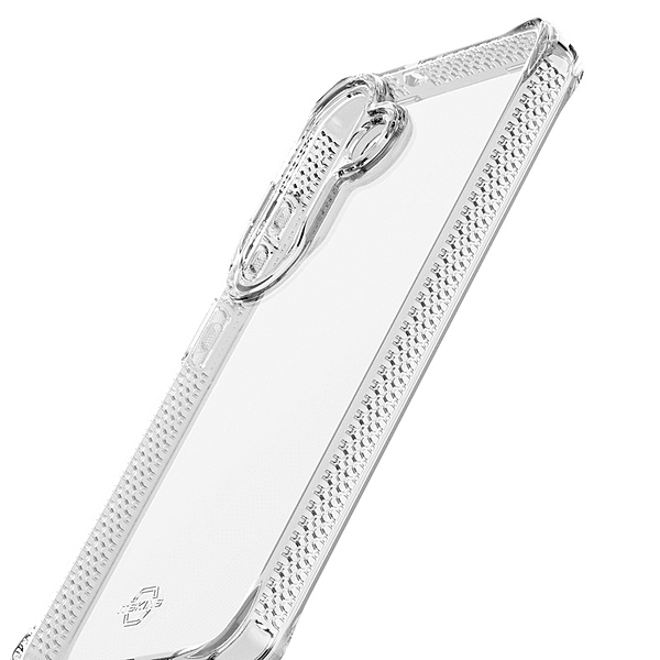 「黄ばみにくい」経年による退色や黄ばみを抑える黄ばみ防止加工で、クリアな透明感を維持します。「装着時の密着痕防止」背面内側に特殊加工を施し、端末とケースが貼り付いて発生するにじみのような密着痕を防ぎます。「耐衝撃」ケース内側には、独自のHEXOTECテクノロジー(ハニカム構造)を施し、衝撃から本体をしっかり保護します。「液晶・背面カメラ保護」画面とカメラ周りを一段高く設計。机置きでも直接触れにくく、傷つきやすい部分を守ります。「リサイクル素材・抗菌加工」製品・パッケージにリサイクル素材を採用。さらに抗菌加工で清潔に保てます。
