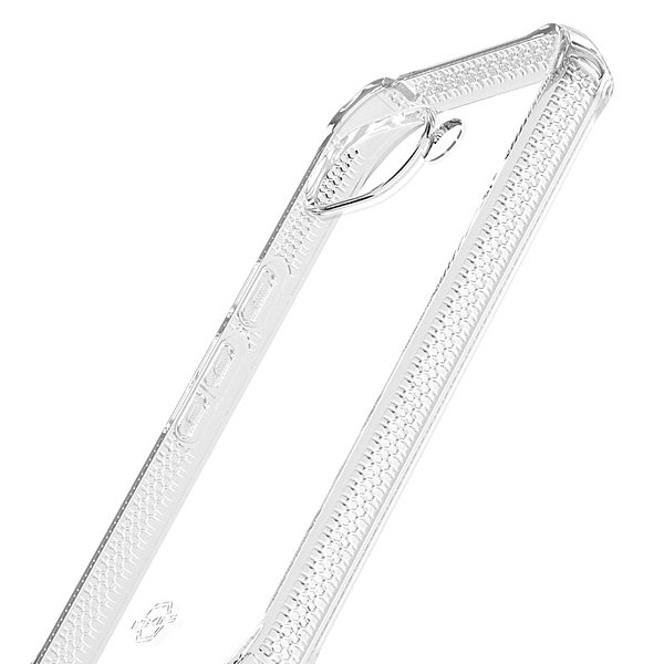 「黄ばみにくい」経年による退色や黄ばみを抑える黄ばみ防止加工で、クリアな透明感を維持します。「装着時の密着痕防止」背面内側に特殊加工を施し、端末とケースが貼り付いて発生するにじみのような密着痕を防ぎます。「耐衝撃」ケース内側には、独自のHEXOTECテクノロジー(ハニカム構造)を施し、衝撃から本体をしっかり保護します。「液晶・背面カメラ保護」画面とカメラ周りを一段高く設計。机置きでも直接触れにくく、傷つきやすい部分を守ります。「リサイクル素材・抗菌加工」製品・パッケージにリサイクル素材を採用。さらに抗菌加工で清潔に保てます。