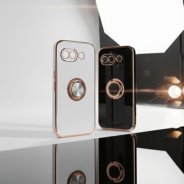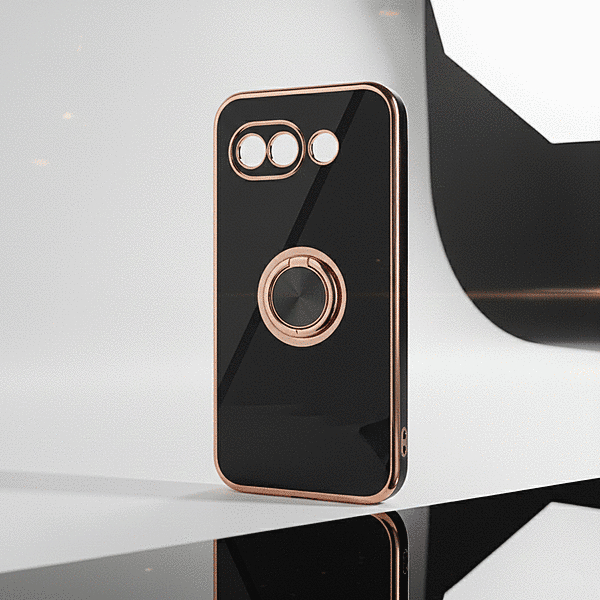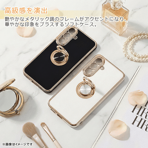 ソフトケース 精密設計 フレームメッキ+リング ブラック/ゴールド