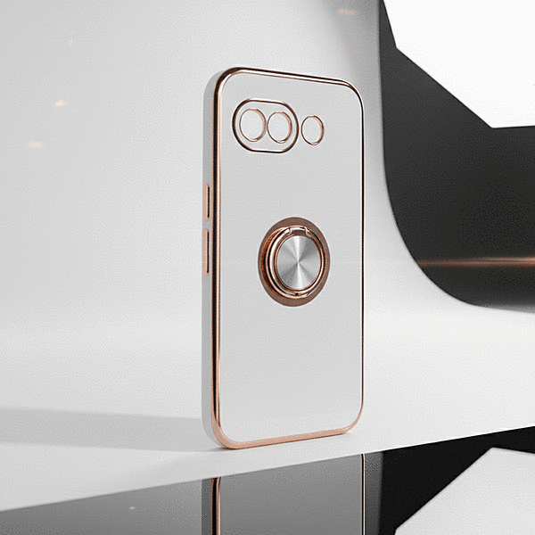 ソフトケース 精密設計 フレームメッキ+リング ホワイト/ゴールド