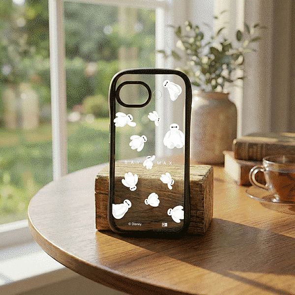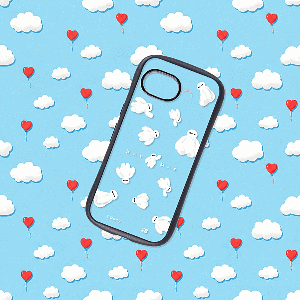 かわいいベイマックスがふわふわ浮かんでいるようなデザインと、衝撃に強い安心感を兼ね備えたハイブリッドケース。