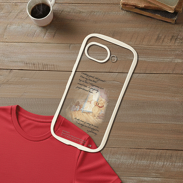 プーさんのまるいおなかがなんとも可愛いらしく心が和むようなデザインと、衝撃に強い安心感を兼ね備えたハイブリッドケース。